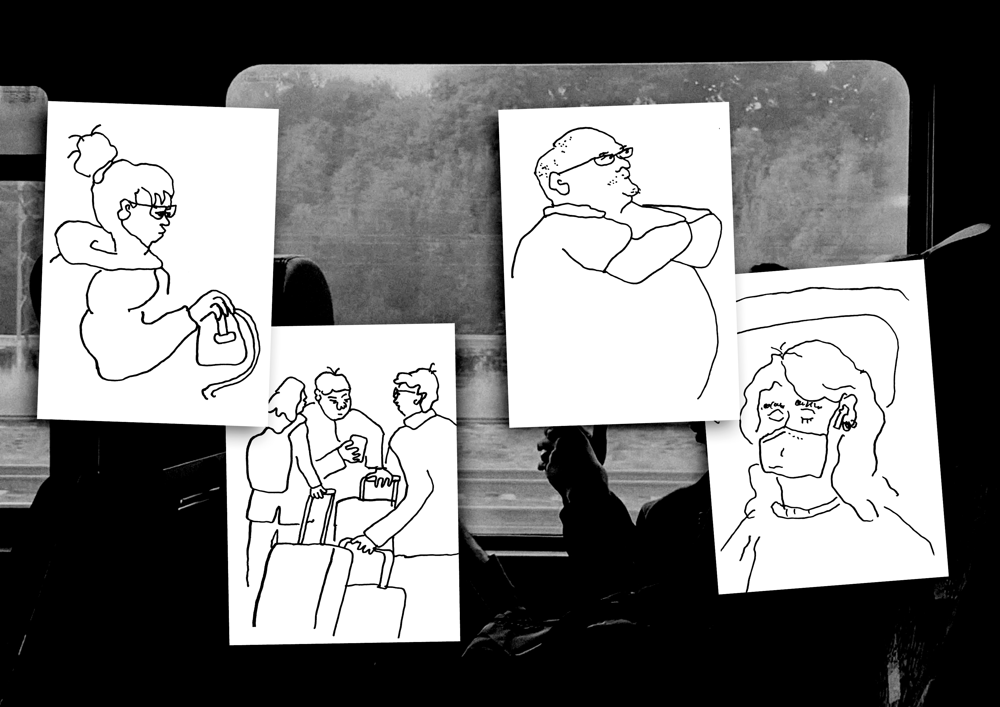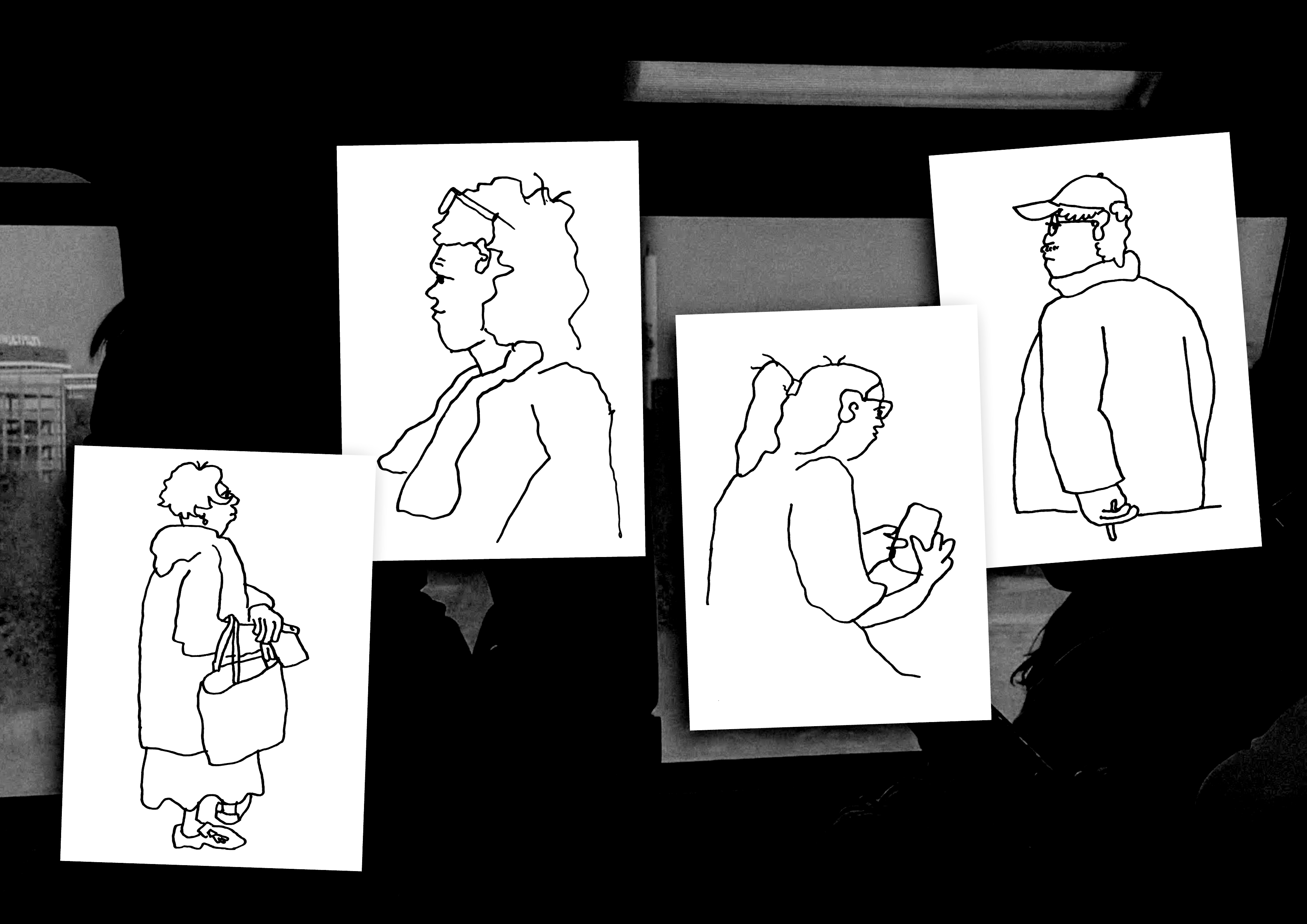 Über einen Zeitraum von drei Jahren entstanden insgesamt 193 Illustrationen von Menschen an öffentlichen Orten. Die schnellen Zeichnungen wurden während Zugfahrten, in Cafés, auf Fähren und in Bistros gezeichnet und zeigen die Schönheit und Einfachheit alltäglicher Begegnungen.