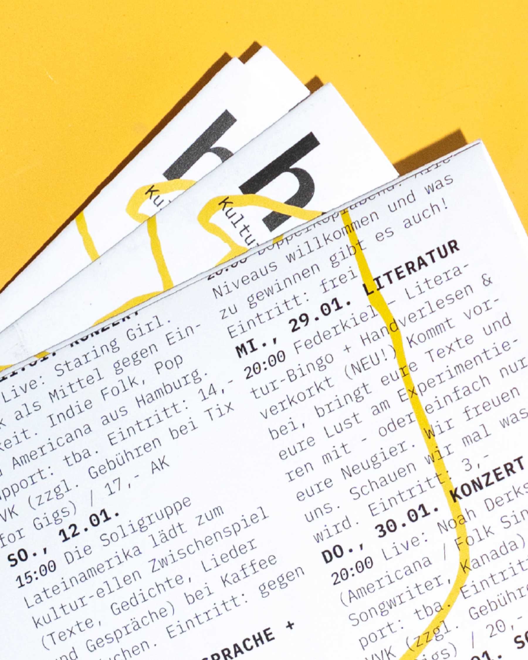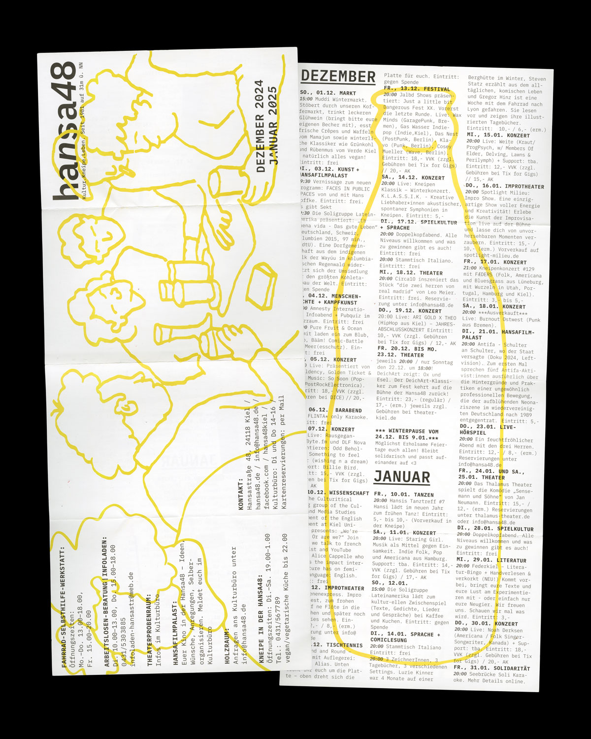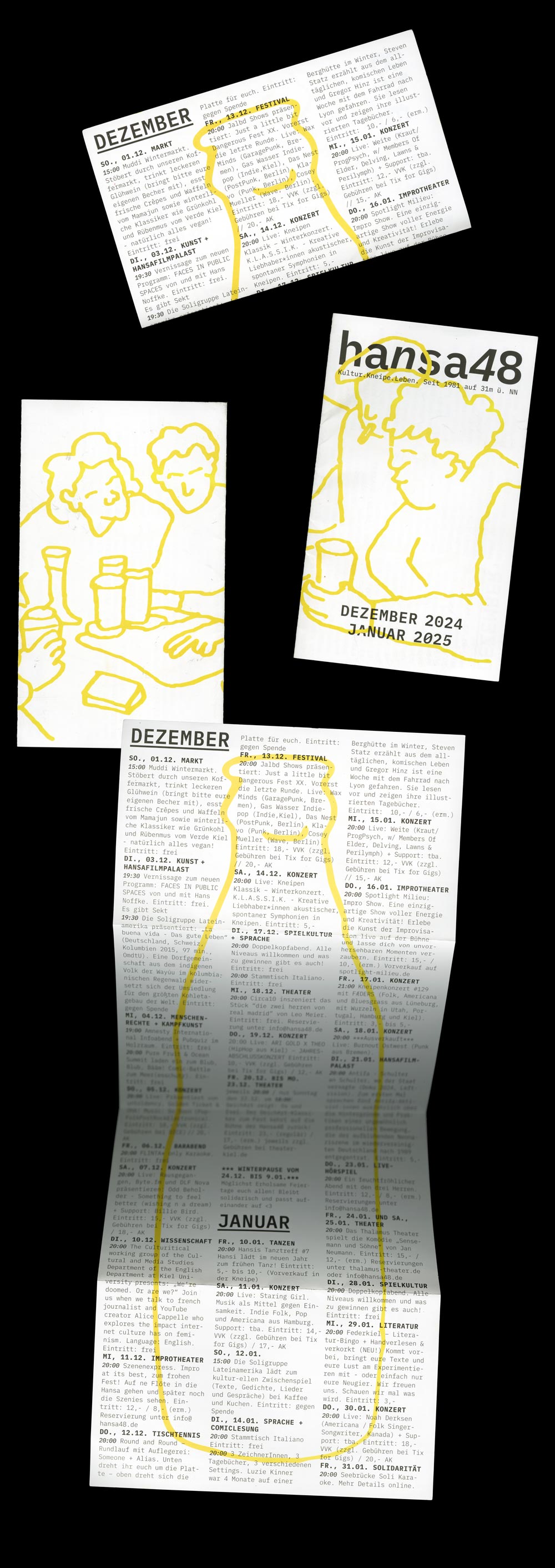 Programmheftgestaltung Dez, Jan für die Hansa 48. Mit Ausstellung Faces in Public Spaces(siehe Projekt).